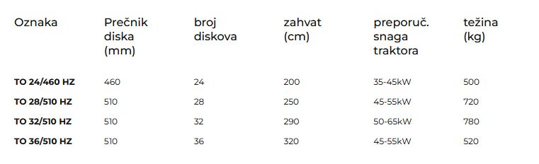 Dostupne TO 28/510 HZ, TO 32/510 HZ, 36/510 HZ; te poluteška varijanta 28/560 HZ I teške varjante TO 24/560 HZ, TO 26/560 HZ, TO 28/560 HZ.