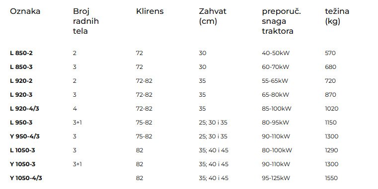 Plugovi obrtači namjenjeni su za sjetvena i duboka oranja na dubinama 25-35cm. Za razliku od običnih plugova obrtači obezbjedjuju oranje bez razora i naora, a radi smanjenja praznih hodova pri okretanju na uvratinama produktivniji su i ekonomičniji. U osnovnoj verziji opremljeni su raonim pretplužnicima, parom crtala na zadnjoj plužnoj glavi i točkom za regulaciju dubine. Dostupne su verzije sa klasičnom „Leopard“ daskom, spiralnom „Y“daskom, rešetkastom, UN-400 daskom. Kod obrtnih plugova modeli 850(12“) i 920(14“) su sa fiksnim radnim zahvatom. Model 950(10-12-14“), te model 1050(14-16-18“) su sa promjenjljivim radnim zahvatom.
