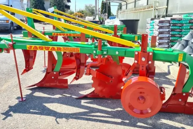 U standardnoj verziji nošeni plugovi “Jaguar” su opremljeni raonim pretpluznjacima i metalnim tockom za regulaciju dubine. za oranja zemljišta u različitim uslovima, što im omogućava promjenjljivi zahvat(10-12- 14”). Promjena zahvata se obavlja vrlo jednostavno, pomjeranjem nosača radnih tijela na gredi i pomjeranjem vučne glave pomoću navojnog vretena. Kvalitetni materijali od koji su izrađeni ovi plugovi, obezbjeđuju dug i pouzdan vijek eksploata- cije i u naj težim uslovima rada. Plugovi su opremljeni sa raonim pretplužnicima što obezbjeđuje dobro zaoravanje biljnih ostataka i stajnjaka, točak koji se ugrađuje na trobrazne plugove omogućava jednaku dubinu oranja na različitim terenima. Ovi plugovi se isporučuju i u varijanti sa rešetkastom i punom daskom, sve zavisno od tipa zemljišta, želje i potrebe kupca. Pune daske su model LEOPARD Y-350 i UN -400.